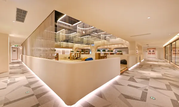 酒店以山海之间,择园而居为灵感、构建出一个“山、海、园”的静谧空间。烟台依山傍海的地理位置造就了独特的“山海文化”,酒店的墙面材质上选用天然石材雕琢出海浪的造型,拙朴、坚韧如山东人的品质;引入了室内“园林”概念,步移景换,不同的空间如同一个室内的“亭子”,让空间变化无穷,虚实相间。 酒店交通便利,周边有天越湾海水浴场、烟台大学、南山国际博览中心、马山寨高尔夫俱乐部,烟台南站、养马岛旅游度假区。 主体楼高五层,一楼为酒店大堂区域,拥有各式客房,餐饮包厢18间、会议室及多功能厅5套,汤泉2000多平,酒店配套设施有:璞宴粤式餐厅、户外烧烤、水悦汤泉、宴会厅、会议室、健身房、洗衣房,为宾客提供一站式入驻体验,坐落于山海之间,隐秘庭院中的璞园酒店,神秘而静谧,在这里宾客可以享受到大隐于市的宁静,心灵片刻的休憩,情绪上的愉悦,物质上纯天然的享受。
