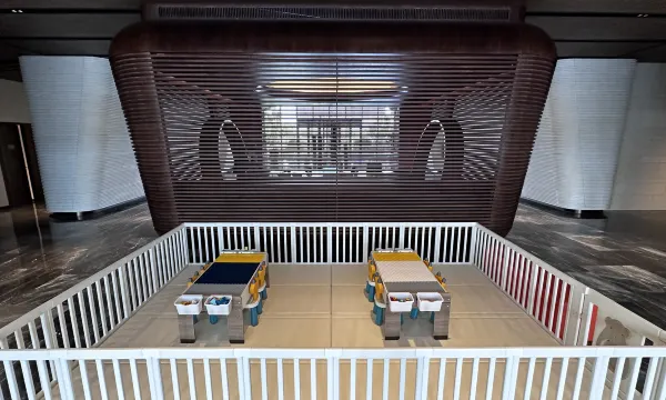 酒店的服务也很贴心,有机器人送餐,还有洗衣房、健身房。更惊喜的是有汤泉,玩累一天后泡个汤,汗蒸一下,全身的疲惫都消失了。这里离海昌渔人码头、烟大夜市都很近,游玩超方便,下次来烟台还住这!