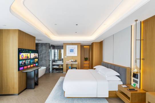 房间非常大,非常智能化,房间干净卫生,也很安静,提供耳塞,早餐丰富,停车方便有大型停车场,交通便利推荐!员工专业素养高,有求必应超高效。房间布局合理,宽敞,很舒服,洗漱用品的品质很好,住得安