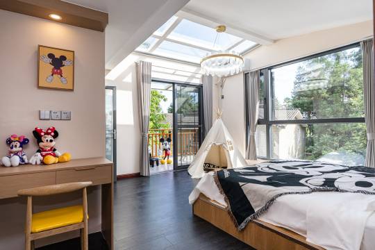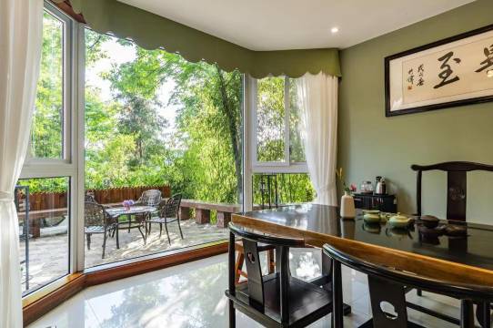 很精致的房间,窗外风景很好,可以看见窗外的绿叶🍃树木,周边环境宜人,很喜欢大大的落地窗,老板人很好👍,外面的露台上有座椅晚上吹吹风很凉快!