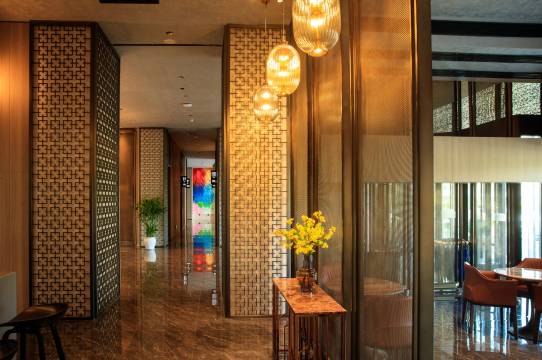 酒店的位置超棒,离荣成高铁站也就5分钟车程,赶车超方便。周边配套齐全,满足各种生活需求。一进大堂,英伦风设计,时尚又优雅,瞬间好感度up!