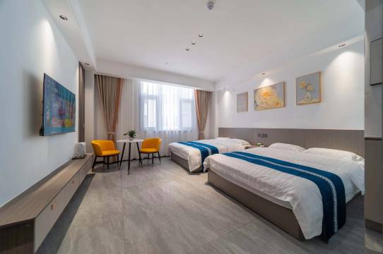 房间空间很大,适合带孩子老人一家出游的,两张大床,装修也很不错,离海边步行5分钟,周边也有好多海鲜店,很值得推荐