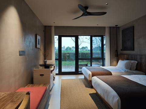 酒店在郊外,但叫车也方便。空气特别的清新,绿绿的稻田,悠悠的小道,晚上特别安静!清晨,在鸟语花香中醒来,暂别城市的喧嚣,很好。