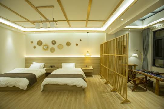 房间十分宽敞,设施齐全,卫生情况也不错. 民宿不仅有专门的停车场, 而且宠物友好, 对于我们带狗狗自驾来玩的实在是太合适了. 我们的房间在顶楼, 有天窗和电动遮阳帘, 早上起来打开遮阳帘就能晒到太阳. 而且虽然在顶楼, 晚上气温比较低的情况下在房间里面还是非常舒适暖和, 可见房间在保温保暖方面是下了功夫的. 还有不得不提的是, 民宿布置得真的非常用心和漂亮, 一楼有花园和锦鲤池, 其他楼层都设有如图所示的休闲区. 最后, 民宿还提供洗衣机和设置了晾晒衣服的区域, 方便了不想带那么多衣服行李的人. 总的来说真的非常推荐!