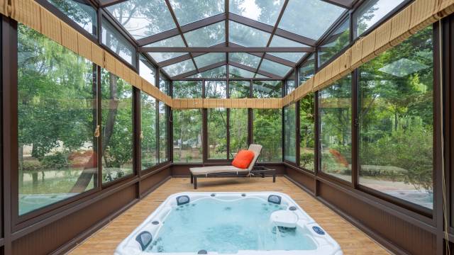 门店位于济南“小泉城”之称的明水,坐落在美丽的百脉泉古城,绣江河畔,园区内绿树成荫,溪流潺潺,是大自然天然氧吧;独栋私享别墅,每个套房都是单独一栋,分布在园区内,环绕池塘,依山枕水的假期,享受大自然的叫醒服务,赏绿听风,在山林给心安个家;房间风格不一,拥有独立会客厅、私享庭院,特色套房配有冲浪泳池和温泉泳池,在玻璃浩室内,360度赏云观景,洗去一身的疲惫