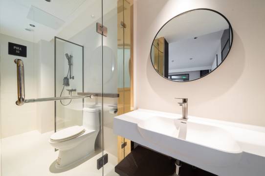 县城的智能型酒店,位置方便中心位置,交通特别方便,就在迎宾路和红旗路天桥东南角,还能免费停车!房间干净宽敞,特别适合家庭亲子出行。非常满意,两张大床太适合四口之家了,有小度智能控制,孩子们用大屏幕投影重温了一下哪吒1,5G网络速度快,热水很好,总体非常满意,强力推荐!