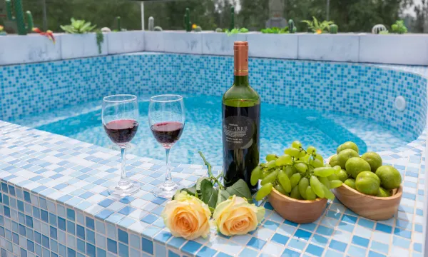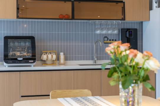 民宿可容纳34人,配套厨房、多功能厅、露台、自动麻将机,每间房干湿分离卫生间(智能马桶、吹风机)。所有大床房全部采用定制分离式床体床垫,可根据需求调整为标准间。房间灯光可智能语音控制。配套设施:大型停车场、全屋地暖、直饮水、中央空调、会议室、投影仪、台球、游戏机、品牌专业音响KTV、自助洗衣房、自动麻将机、儿童娱乐区、书籍、咖啡机、制冰机、厨房品牌家电(电压力锅、电火锅、空气炸锅、电饼销、冰箱、消毒柜)锅具、刀具、餐具、红酒杯、咖啡杯、调料、提供免费烧烤工具、提供早餐。