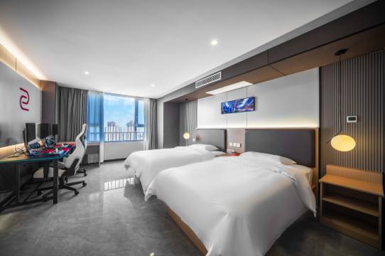 酒店的内有大床房,双床房,三人房,五人房可供选择,内部设施无比豪华。用心打造出一款以科技为主题、充满未来感的电竞酒店。从时尚典雅的客房到宽敞舒适的公共区域,处处洋溢着浓厚的电竞氛围。我们还为电竞爱好者们精心推出了一系列特色服务,如免费高速Wi-Fi、4070显卡/4080显卡,2K170HZ显示器/2K170HZ显示器,罗技502鼠标,维奇电竞椅等,在这里,您可以与志同道合的朋友们尽享无忧的住宿体验,尽情投入到激情四溢的电子竞技世界