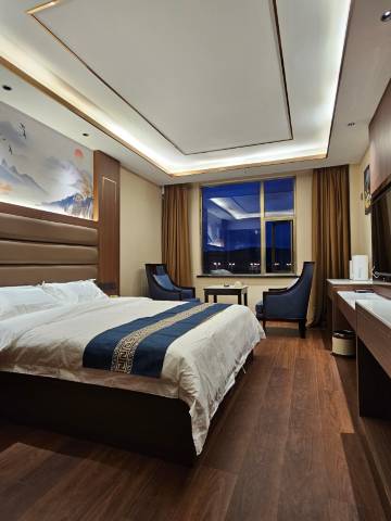 酒店装修风格轻奢风,有电梯对行李多的游客非常友好!房间空间大,提供氧气设备,干湿分离。早晨窗外景色很漂亮!提供的早餐也很不错!
