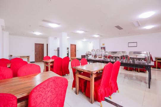 早餐是酒店自己做的普通早饭,我们可能去的晚了,包子有点冷了,有包子白粥炒粉丝、红薯鸡蛋油条、小番茄酸萝卜榨菜、牛奶豆浆等。用餐时间7到九点,建议起来了就早点去。酒店环境中规中矩有点陈旧,属于经济型