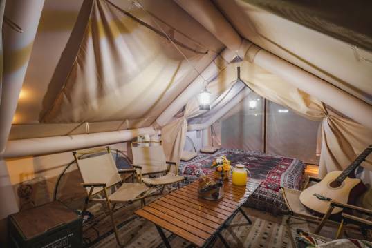 很不错的体验,露营还看到了日出,早晚温差大,需要带毯子。帐篷里很干净,都有一次性的四件套,服务员有求必应,尤其是小林,矿泉水纸巾提供的很及时。