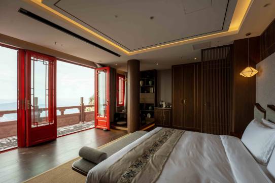 酒店虽贵但完全值得!金顶道观群唯一一家酒店,无论位置、设施还是服务都堪称完美!虽然上山那天下雨没有看到黄昏,但第二天可以直接登玉皇顶去看日出,便捷度绝绝子!酒店硬件设施真的很不错,房间超大也很干净,浴缸淋浴都有,干湿分离很干净,咖啡机、迷你吧饮品齐全,矿泉水也供应充足。房间阳台可以看山看云海,往左远眺就是伏牛峰石碑那个最高点。酒店工作人员也很热情周到,提前会联系,给到管家接送服务和门票预订提示,领路带去房间也很贴心。酒店出门就是山顶的各种店铺,可以买吃的买喝的,非常方便。