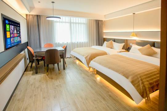 我们的客房设计典雅舒适,为商务出行提供了便利和舒适。每间客房都配备了现代化的设施和便利设备,使您的工作变得更加高效。同时,我们也注重细节,为您提供一个舒适宜人的休憩空间,以确保您的入住体验完美无缺。