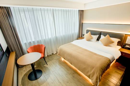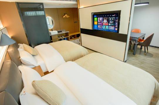 房间很智能化,床垫睡的很舒服,周围环境很好有莲花广场,还有烧烤小吃都在旁边,门口停车方便,卫生很干净,前台小妹妹很热情,性价比很高,下次还选择这家酒店。
