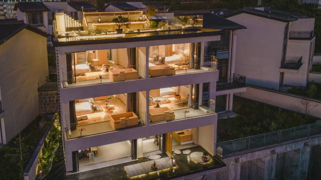 这是一家小而美的四层民宿,只有5间客房,特别适合一大家子或者几家人把整个楼包下来。公共区域有老板的私人茶具收藏的展示,整体的高端品质称之为超高端私人会所不为过。