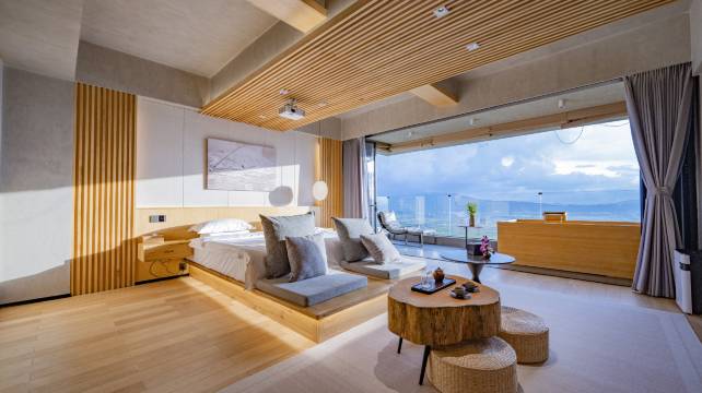 京都安曼风格 考究的木质日系风格 无论是温泉浴缸的选择还是床品的奢华 处处都能感受到民宿主的讲究与用心 特别值得一提的是入住仅一日便享受到了民宿主提供的家宴,让在外独自旅行的我在这临近新春佳节的日子收到如同家人般的温暖。民宿屋顶平台俯瞰腾冲全城和赏日落晚霞的最佳视角。