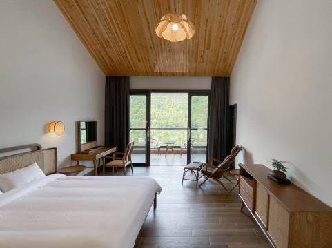 民宿位于河源市东源县锡场镇厚洞村,毗邻万绿湖畔,坐拥“前湖后山”的自然景观,开业以来以“原木侘寂风+野趣生活美学”为特色,打造沉浸式山水栖居体验。客型涵盖湖景房、日式榻榻米及亲子套房,均配备干湿分离浴室与观景阳台,推窗可见波光潋滟或竹林清风。公共区域设户外吧台、星空影院、家庭KTV及儿童沙池滑梯,提供竹筏游湖、垂钓捕鱼、溯溪露营等特色活动,并供应万绿湖鲜鱼、竹林走地鸡等在地美食。这里既是湾区游客休闲康养的新选择,也是重温乡野童趣、静享湖光星河的理想之地。