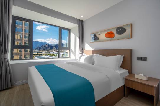 房间挺干净的,前台小何也挺热情的,环境还可以,早餐也能送到房间,总体体验不错,建议来入住的人住高楼层,太阳照进来挺舒服的!