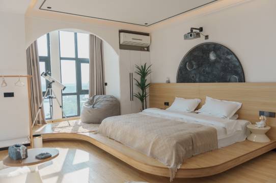 环境不错,有智能语音助手,方便开关窗帘等。适合入住。如果熏香可以打开和关上就好了,不是味道不好闻,是我不想要有味道。