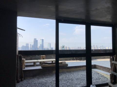 看样子是新开的一家民宿,位置很好,接待处外面有一个露台整个渝中区尽收眼底,还能看到江。