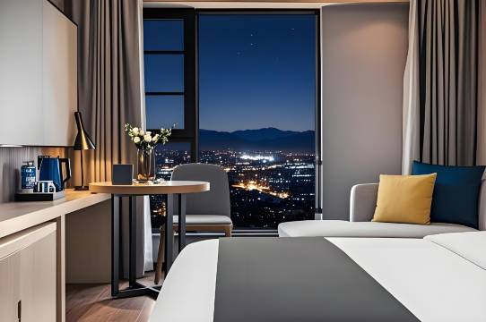 而在斗南花市的旁边,有一家酒店,以其独特的智能科技和时尚风格,为旅客带来全新的休闲商务体验。