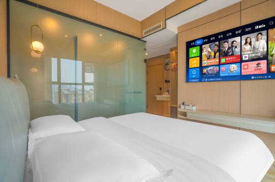 这家酒店超级五星✨地理位置超棒,靠近斗南花市,交通也便利,出行可太方便了,投影的质感很好,高清大屏幕,住在这家酒店我睡的舒服、踏实,智能也非常好使,窗户都是遮光很强的双层帘,房间卫生做的很好,非常干净,反之就是非常满意,无敌到爆炸的酒店!