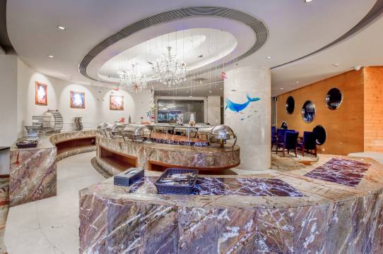 酒店还设有荟萃中外美食的海之韵西餐厅、露天餐厅、千人宴会大厅,是您商务、会议、旅游、度假的明智选择。