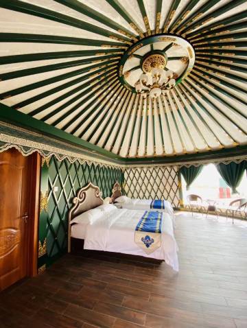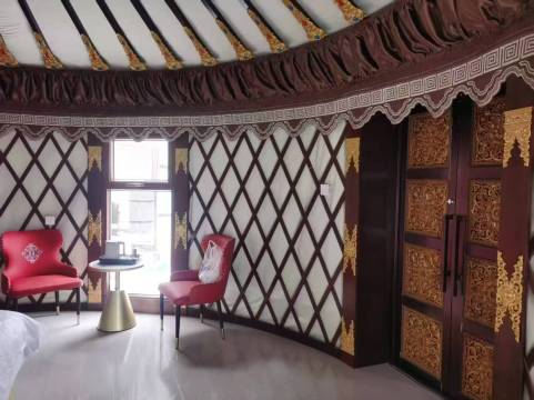 蒙古包内空间很大,装饰太有民族特色了,特别喜欢卫生间,干湿分离的,大窗户室内采光很好,出门走几步就是草原