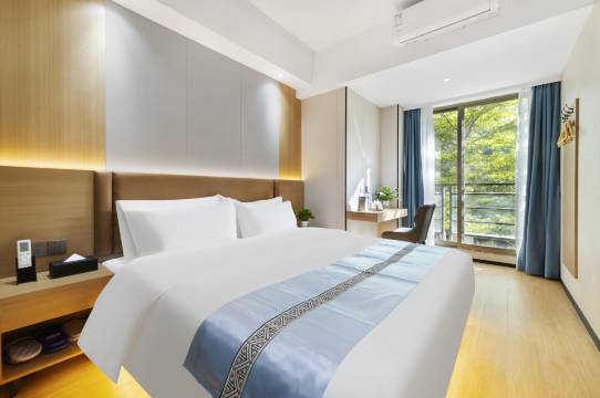 来广州参加展会,入住这间酒店的体验超棒!房间整洁明亮,浅木色地板搭配雾霾蓝窗帘,温馨又雅致。最惊喜的是床铺,柔软舒适得让人一沾枕头就沉沉睡去,一夜好眠的满足感至今难忘。小圆桌设计简约,窗边采光极佳,办公或喝茶都很方便。酒店位置优越,周边绿树成荫,出行便捷,距离展馆10分钟左右的车程。前台服务热情周到,细致贴心,还会主动准备热水和水杯,让人倍感温暖。