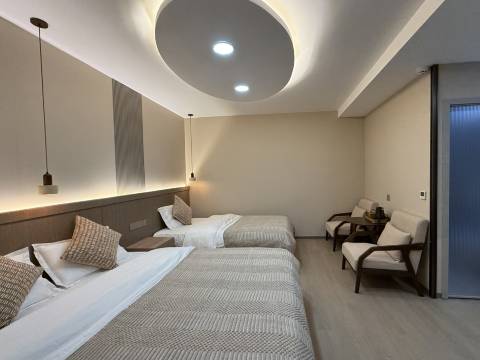 客房是新装修的,各种设施非常齐全讲究,马桶是全智能的,洗浴用品是品牌的,全屋热水,洗漱非常方便!房间干净整洁,装修简洁大方!居住环境安静宽敞!老板娘热情大方,人美心善,始终笑眯眯的,像个洋娃娃。司机大哥做的一手好饭菜,烤肉特别地道!在喧嚣的城市中待久了,轻奢一宿就是你远离尘嚣,回归自然的第二个家!值得再来!