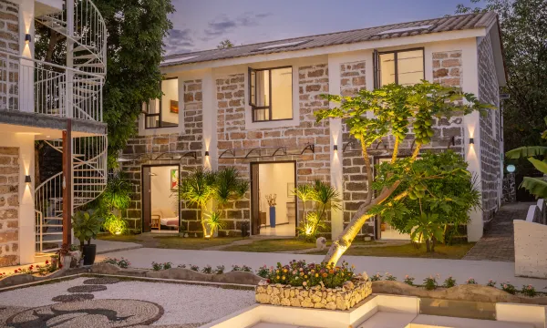 「梵尘•花墅」四合院度假民宿位于涠洲岛公山村仔村,民宿临近网红景点:贝壳沙滩和天主教堂,海鲜菜市场仅几百米之遥 该地也是涠洲岛上观看日出的沙滩,在潮落时还可赶海、抓蟹玩耍。民宿在公山村仔环岛路旁,交通条件便利,随处可见美丽的村庄景象。 每个人心中都有属于自己的一个小院子,我想「梵尘•花墅」就能实现大家的这个小愿望。 『梵尘•花墅』是一个以花的名义诠释了民宿的地方。民宿建筑整体按照四合院的形式打造,在设计上以当地传统民居的珊瑚石为基础,外观上保留了民居的特点。 民宿致力于为客人提供悠闲的度假方式,院子设有观景餐厅,休闲茶室,环院花园,下沉式休闲区,公共楼顶泳池,观景露台休闲区,泳池边上就可以欣赏晚霞和星空 民宿提供24h热水,空调,wifi,可加工海鲜,菜品优质,民宿是由:庭院双床房 花园大床房 复式家庭房 和熊猫主题滑梯房等架构组成的一个全户型民宿。 优雅静谧的庭院美景室内,享受纯净、轻松、舒适的居住环境,喜欢•享受 大自然的每一个落笔! 『梵尘•花墅』四合院度假民宿