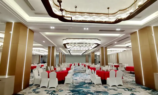 酒店是一家高端综合性轻奢酒店。酒店地理位置优越,地处叙州区城北新区,是离叙州区政务中心、宜宾高新区光伏产业园区、菜坝旅游产业园区很近的中高端酒店。 酒店交通便利,毗邻银昆高速叙州收费站(4分钟车程)、S4成宜昭高速(8分钟车程)、宜宾高铁西站(10分钟车程)、五粮液机场(24分钟车程),公交有25(鼎仁国际站下车)、48(居然之家站下车)、52(德福车城站下车)、K01(鼎仁国际站下车)、K07(一曼公园站下车步行)。毗邻少峨山风景区、一曼公园、合江门长江地标广场(看地球20分钟车程)、翠屏山景区、西部大峡谷、横江古镇等景点。 酒店配置客房、大型宴会厅、全日制餐厅、会议室、茶室棋牌、健身房、恒温游泳馆等设施服务功能,酒店秉承“轻奢、舒适、品质”等核心理念,倾力打造出豪华闲适、精彩纷呈的酒店环境和氛围,为您精心定制专属于您的酒店尊贵体验;紧紧围绕以与生俱来的高端意蕴,贯通与精英阶层的心灵共鸣,酒店位于城市的喧嚣与山水的宁静之间,5分钟生活圈即可涵盖城市的热闹,也可享受山水的宁静。 酒店拥有轻奢风格的雅致客房,充分满足商旅客人不同出行需求,宽敞居停的空间,开阔的观景全自动落地窗,让宾客置身城市上空饱览璀璨夜景。 酒店拥有可容纳520余人同时用餐的宴会厅、可容纳60-300余人的多个会议厅及5个不同规格的豪华餐饮包间。用简洁的空间诠释安静现代的会议氛围,更有酒店策划团队提供周到服务,助力高雅盛会完美呈现。 【注】线上OTA订单不支持布置婚房或其他需要布置的用途,若需布置,请电话联系酒店