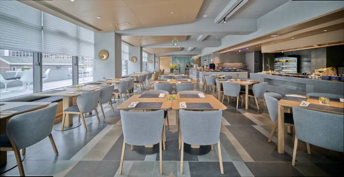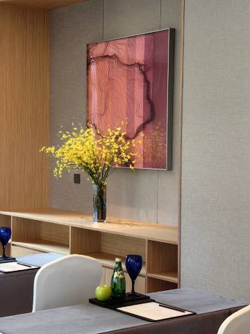 酒店在滨江新区,自驾游的话地段位置要求不高,酒店总体比较新,也很有设计感,餐厅的窗景如果是晴天应该很好看。