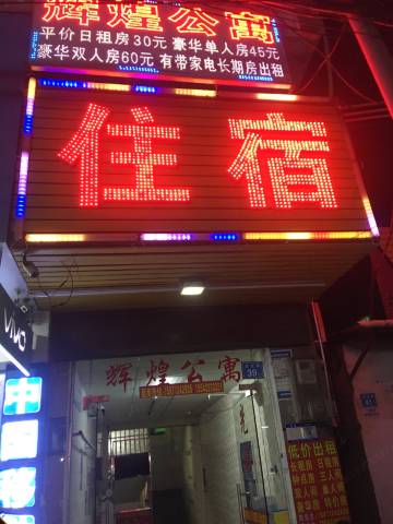 辉煌公寓位于广东观音山森林公园、银瓶山森林公园、潼湖湿地公园和惠州市区的核心区城——仲恺高新区沥林镇迭石龙村迭企路39号。莞惠高速、武深高速、莞惠公路(仲恺八路)在此交汇。附近有沥林城际沥林北站、沥林汽车站。惠州328A、201、301东莞749公汽直达本公寓,交通极为方便。该公寓住宿环境优美、卫生干净、设备齐全、电视WiVi一应俱全。有商场购物、饮食快餐足不出户,尽享快捷方便。公寓专人管理房间布局干净明亮,一尘不染,是旅客消困解乏的不二选择,一日入店,终生难忘。公寓职员恭侯各位大驾光临!