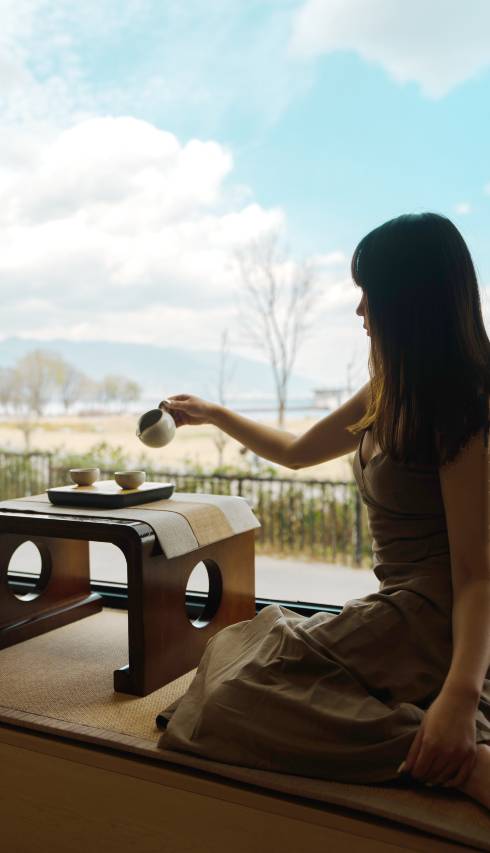落地窗推开就是治愈蓝,泡一壶茶吹着洱海风,享受下午茶,惬意到不想挪动半步;与洱海同框,浪漫感直接拉满 。下次来大理还要住!谁能拒绝在洱海边,把日子过成诗呢