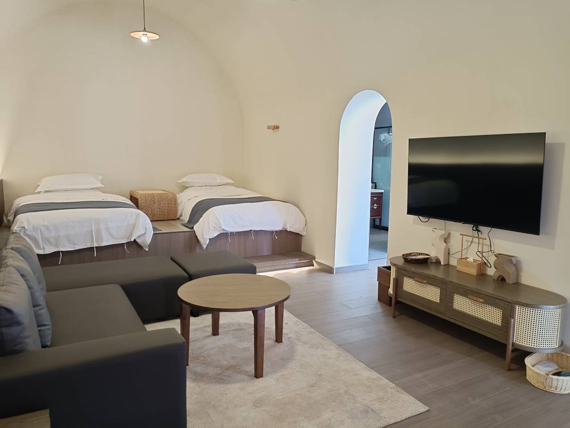 窑洞房很有特色,卫生服务都不错,暑期酷热天在这里简直不要太凉快,下午时候蓝蓝的天空飘着大朵大朵的白云,特别好看.