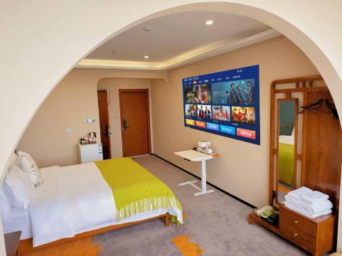 地理位置很好,房间干净明亮,设施设备齐全,有投影仪这些,重点是有自动麻将桌,出行玩累了可以跟朋友打打麻将超级舒服。下楼出门周边就是美食店,停车也方便 值得推荐
