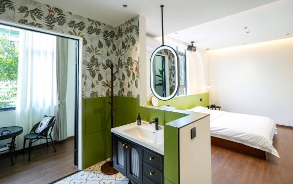 正如名字很清新一样,酒店也非常干净也很有格调,住进🈶奶茶名字一样的这个酒店,非常有安全感,设计有北欧风,墙壁是绿色,充满希望,还有投屏电影,瞬间有科技现代感。楼下和附近就是美食店铺。美好的一点是掌柜人🈶耐心还可爱友善。我因为一间住宿一夜安心睡眠爱上泉州一座城市。喝上一杯泉州清晨咖啡,学有所成,收获满满回家。下回还来