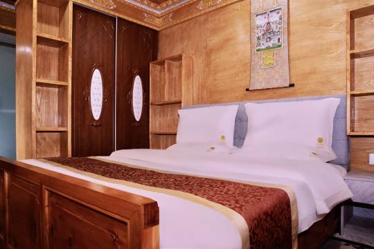 客栈是藏式的,老板和孩子们都是藏族同胞。一家人非常的热情,院子干净整洁,院中有块绿地,开满了花儿。整个客栈是木质结构的,房间干净卫生。晚餐就在客栈吃的,份量十足。值得推荐给大家。放心的住。