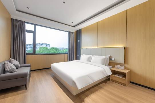 房间很大很干净,前台姐姐很热情,酒店位置很好找,楼下就有吃的和公交站还有共享电动车,出门方便,周边就是景区,步行就能到