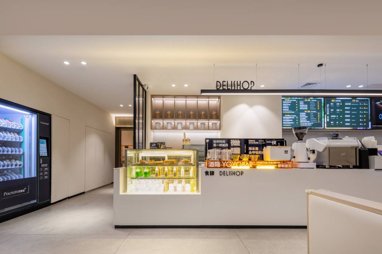 公寓大堂提供24小时全天候贴心的管家服务,住于此可享受安全、舒适、品质的生活!同时食肆区域将提供专业现制精品咖啡茶饮和轻餐食品,旅客可品尝手工制作茶咖饮品以及各式精美餐食。夜幕降临,大堂将摇身一变成为“酒隐”小酒馆,旅客可自行购买啤酒、鸡尾酒等,自行制作的酒精饮品。