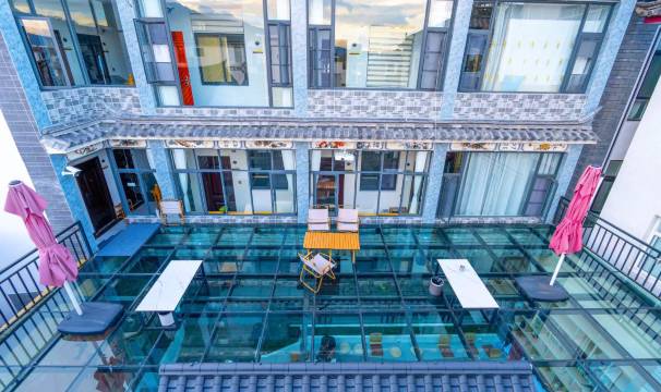 民宿二楼有一个公共的玻璃栈道,可以乘凉,可以聊天,可以看天空……