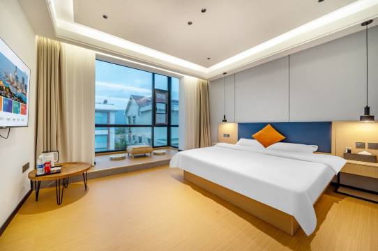 一进门前台小姐姐很热情,服务很周到,房间很温馨干净,环境不错里面娱乐设施很多,还有室外空间也很大适合单位团建,家庭聚会,离景区很近,出行也方便,非常满意的一次入住体验,推荐!