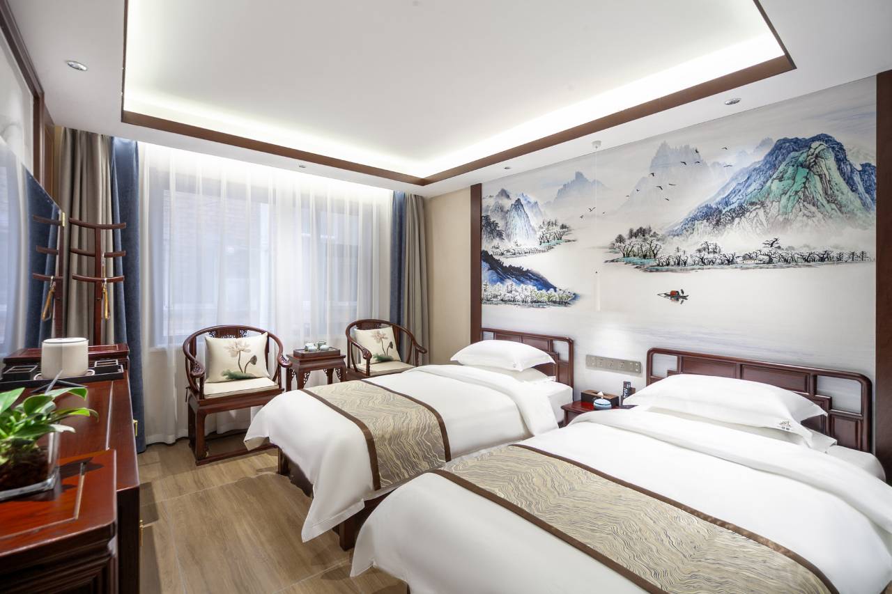 本店新中式高端装修,融合现代智能元素,彰显文化自信的同时,充分考虑到了“以人为本”的服务理念。全屋智能恒温系统,干湿分离,布局合理,让众多住客有“归家胜家”之感慨。