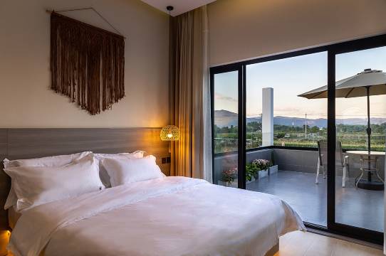 民宿整体环境给人一种温馨轻松的氛围,我们住的揽月房的阳台超级大,一到阳台开阔的视野非常震撼,还有一把大遮阳伞,坐在阳台上吹着风看着风景幸福感满满,心情不自觉都会变好,早上也能直接在阳台上欣赏日出🌅