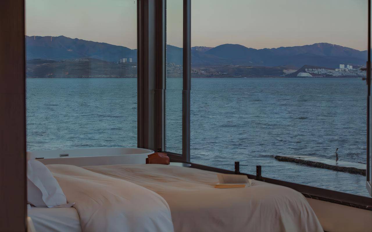 由厦门知名设计师杨天彬操刀设计,在不破坏大自然的前提下,大力发展极简风格,还创造了全景玻璃观海空间,高配置景观阳台,舒适空间,让身心都在厦门海湾中沉醉,酒店内还设置了咖啡吧,为你足不出户就可以享受海边下午茶。