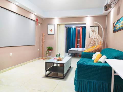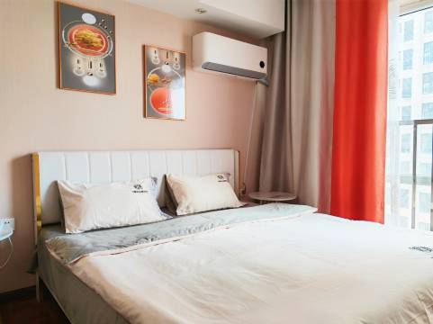 房间为loft,房间内楼上有一张大床,一张榻榻米,楼下一张小床,住四个大人一个小孩绝对没问题,地下停车场很大,找老板要免费停车券,楼下吃饭地方很多,旁边就是商场,去八大局,海岱楼,海月龙宫烧烤城开车都不远,老板人非常好,下次有机会还来住!
