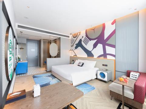 - 装修别致:国潮风+现代简约,公共区绿植+香氛,房间智能客控(一键关灯/窗帘)、感应夜灯,拍照出片