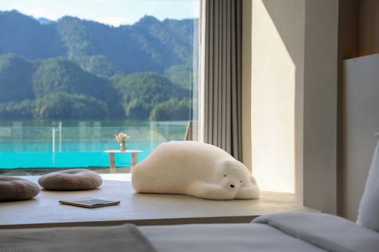 多间一线豪华湖景客房,可容纳30+人左右团建,派对包栋。无边泳池、KTV、露天篝火烧烤台、露营草地天幕、游戏机室、棋牌室、台球室、儿童乐园、中餐厅、咖啡吧、酒吧应有尽有。如果您是水上户外运动爱好者,沐心有私享浅滩可直接下湖。夏天玩水、啤酒小烧烤,冬天篝火晚会、围炉夜话。周边可爬山、可漂流、可玩卡丁车、可坐热气球,直升机,门口还可以钓鱼、可以下湖玩浆板皮划艇冲浪、可在亚运会自行车专业赛道感受骑行的魅力。
