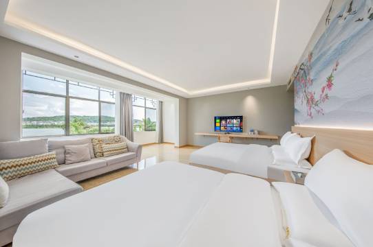 房间温馨,前台服务人员服务态度好很温和,酒店地理位置也非常好在湖泉生态园的旁边,卤鸡米线也很好吃,非常便捷,总体很棒,下次还会再来入住。非常满意。